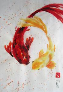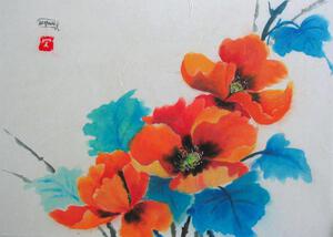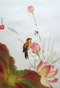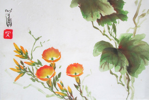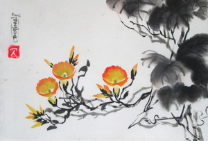 "De penseelstreek begint in de lucht en met een ademhaling raakt hij het papier om een impressie van de werkelijkheid vast te zetten". Er word van te voren niet getekend en alle schilderijen zijn met Chinese inkt en aquarel op rijstpapier gemaakt. Het papier is zo dun dat op een ander vel rijstpapier "geplakt" dient te worden en dit proces duurt 24 uur (incl. droogtijd) .