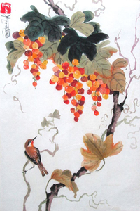 Bessen met vogel