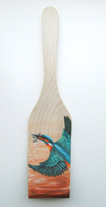 2020Beschilderde houten spatel . IJsvogel aan het vissen.